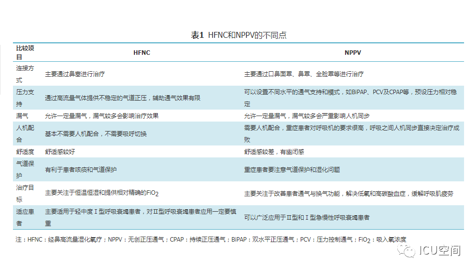 圖1 經(jīng)鼻高流量濕化氧療儀示意圖 人類開始氧氣治療的歷史可回溯到18世紀(jì)后葉,20世紀(jì)初即開始應(yīng)用橡膠制作的鼻導(dǎo)管進(jìn)行氧療[4]。1987年美國研發(fā)了最高流量可達(dá)20 L/min的氧療加溫濕化裝置MT-1000,應(yīng)用于囊性肺纖維化等患者氧療促進(jìn)下呼吸道分泌物排出。近10年來,HFNC進(jìn)入快速發(fā)展和臨床廣泛應(yīng)用階段,國際主流HFNC裝置都是采用無創(chuàng)呼吸機(jī)的工作原理:用空氧混合器進(jìn)行空氧混合,吸入氧濃度(FiO2)為21%~100%,應(yīng)用渦輪提供高流量的氣體,采用呼吸機(jī)應(yīng)用的加溫加濕器和管路加熱導(dǎo)絲對吸入氣體進(jìn)行全程加溫加濕,并通過近患者端實(shí)時(shí)監(jiān)測溫度和氧濃度進(jìn)行動(dòng)態(tài)調(diào)控。另外,部分呼吸機(jī)廠家在有創(chuàng)和無創(chuàng)呼吸機(jī)上設(shè)置了HFNC功能,進(jìn)一步拓展了呼吸機(jī)的臨床適用范圍,這也是未來的發(fā)展方向[5]。國內(nèi)HFNC的歷史僅有5年左右,在前期仿制國外HFNC的基礎(chǔ)上進(jìn)行創(chuàng)新,在很短的時(shí)間內(nèi)形成自己的特色,如可自動(dòng)調(diào)節(jié)和精確調(diào)控FiO2(21%~100%)、溫度控制精度可達(dá)到±1 ℃、呼吸管路采用免消毒氣路技術(shù)等。 二、HFNC設(shè)備的結(jié)構(gòu)特點(diǎn)及其工作原理 (一)HFNC的結(jié)構(gòu)特點(diǎn) HFNC按其結(jié)構(gòu)特點(diǎn)可分為3大組成部分。 (1)氣體的空氧混合部分:其作用是將空氣和氧氣按預(yù)設(shè)氧濃度在渦輪前進(jìn)行混合。氧濃度調(diào)控有2種方法,一種是通過浮標(biāo)式氧氣流量計(jì)調(diào)節(jié)氧氣流量實(shí)現(xiàn)對氧濃度的控制,該方法無法預(yù)設(shè)氧濃度,只能通過調(diào)節(jié)氧氣流量產(chǎn)生實(shí)際的FiO2;一種是微型比例閥和超聲氧濃度傳感器實(shí)現(xiàn)對氧濃度的控制,可以預(yù)設(shè)FiO2。 (2)氣體的加溫濕化部分:其作用是將空氧混合后的氣體進(jìn)行加溫濕化。 (3)氣體的輸送部分:其作用是保證已完成加溫濕化的空氧混合氣體以恒溫恒濕恒流速的方式輸送至患者端。高流量濕化氧療儀與患者連接部分為高流量鼻塞,高流量鼻塞的尖端呈斜面型的出口,質(zhì)地柔軟,用一個(gè)具有彈性可調(diào)節(jié)的過耳頭帶固定于患者面部。 (二)HFNC的生理學(xué)機(jī)制 HFNC通過輸送高流速氣體的方式,可以維持一定水平的PEEP,維持肺泡開放,有利于呼氣末肺泡復(fù)張和氣血交換。Corley等[6]通過使用電阻抗斷層掃描(EIT)測量心臟手術(shù)后肺容積的生理學(xué)研究證明了HFNC可促進(jìn)呼氣末肺容積增加,表明HFNC通過高流量產(chǎn)生的PEEP作用促進(jìn)肺復(fù)張。有研究結(jié)果顯示,HFNC流量每增加10 L/min,患者咽腔PEEP就增加0.5~1 cmH2O(1 cmH2O=0.098 kPa)[7]。流量增加到60 L/min時(shí),閉口的女性受試者咽腔PEEP可達(dá)到8.7 cmH2O左右,男性為5.4 cmH2O;張口呼吸情況下女性為3.1 cmH2O,男性為2.6 cmH2O左右。但值得注意的是,由于HFNC允許大量漏氣,患者若張口呼吸必然導(dǎo)致PEEP水平不穩(wěn)定[6]。 HFNC通過為患者提供恒定的、可調(diào)節(jié)的高流速空氧混合氣體,沖刷患者呼氣末殘留在鼻腔、口腔及咽部的解剖無效腔的氣體,可明顯減少患者下一次吸氣時(shí)吸入的CO2的含量[8]。M?ller等[9]通過81 mKr氣體測定HFNC對10名健康人鼻咽部和3例氣管切開患者CO2的清除率,發(fā)現(xiàn)CO2清除率和HFNC的氣體流速和佩戴時(shí)間直接相關(guān)。 HFNC主要關(guān)注于提供相對精確的恒溫和恒濕的高流量氧療,因而能夠更符合人體生理情況下呼吸道的氣體溫度及濕度,降低醫(yī)用干冷氣體對上下呼吸道黏液纖毛系統(tǒng)功能和黏膜的影響[10]。與普通氧療相比,使用HFNC可以明顯降低患者鼻、口、咽喉的干燥評分,有助于稀釋痰液和排痰,修復(fù)和維持人呼吸道上皮細(xì)胞和纖毛的結(jié)構(gòu)和功能,提高患者的舒適度,降低下呼吸道感染的發(fā)生幾率[6,11] 鼻咽腔通過提供較大的表面積對吸入氣體進(jìn)行濕化和溫化,但同時(shí)吸入氣體之間的摩擦?xí)饬鳟a(chǎn)生明顯的阻力[12]。HFNC可以提供滿足患者吸氣流速需求、恒溫恒濕的高流量氣體,患者在吸氣時(shí)不需要用力吸氣也不需要對吸入氣體進(jìn)行加溫加濕,這樣不僅降低吸氣阻力,同時(shí)避免患者對吸入氣體進(jìn)行溫化濕化所需的代謝消耗,減少患者的呼吸做功[13,14]。而且與常規(guī)氧療輸出的低流量氧氣方式相比,HFNC能提供符合或超過患者所需的吸氣峰流速,減少了吸氣時(shí)空氣的稀釋作用,使得吸入氧氣的濃度不會(huì)受到患者的呼吸頻率、吸氣流速、呼吸形態(tài)等因素的影響,為患者提供精確穩(wěn)定的吸氧濃度,有利于改善患者氧合[6]?;颊叩脱鯛顟B(tài)得到改善,呼吸更舒適,自主用力呼吸減弱,加之PEEP作用,呼吸功會(huì)隨之降低[15]。 三、HFNC與NPPV的異同點(diǎn) HFNC和NPPV在治療原理上存在許多相似之處。從工作原理上看,都是電動(dòng)渦輪機(jī)驅(qū)動(dòng)形成高速氣流,通過電磁閥實(shí)現(xiàn)流量可控,氣流均可加溫加濕,都是傳統(tǒng)意義上的正壓通氣,能夠維持一定水平的PEEP,實(shí)現(xiàn)氣道開放,減少死腔,改善通氣,且允許開放氣道發(fā)生漏氣。HFNC和NPPV的不同點(diǎn)見表1[16,17]。 表1 HFNC和NPPV的不同點(diǎn) 四、HFNC