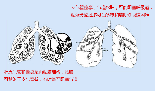 以上呼吸道對外界的敏感性增高為特性,引起氣道狹窄分泌物不能排出。應解除支氣管痙攣以擴張支氣管。