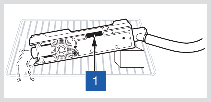 在水中 (<35°C/95°F) 徹底漂洗各部件。讓水從各部件中流過,以除去有機物質(zhì)(如血液和其它殘留)。