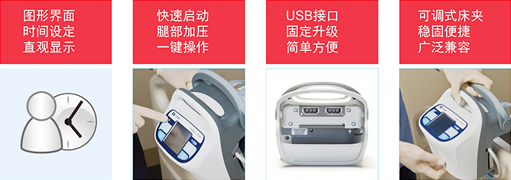 ②圓周壓力:通過(guò)充氣腿套對(duì)腿部進(jìn)行圓周壓力,有效清除靜脈瓣后血液瘀積;