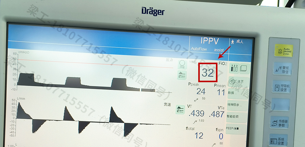 接好氧氣管和空氣管,然后開(kāi)機(jī)到正常工作頁(yè)面