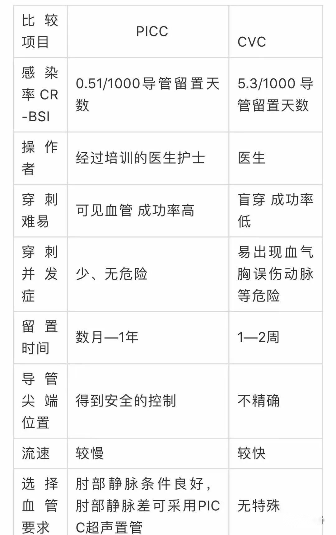 1、PICC:PICC 導管通常是由外周靜脈置入中心靜脈,其導管的尾部要求置入上腔靜脈的下 1/3 處。