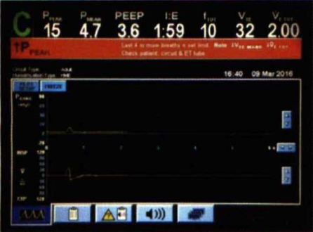 對于此類警報時立即檢查呼吸輸送系統(tǒng)是否有漏氣,患者阻力和順應(yīng)性是否發(fā)生改變。